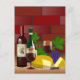 Lovely scene of two glasses full of red wine, and two wine bottles, one red and one white (green). A background of a brick wall and purple grapes and green leaves, along with a wheel of cheese, sliced open.  This elegant vineyard, winery or wine making scene makes a great customizable or personalized gift for the wine shop owner, wine tasting party or just the lady who loves to wine and dine.   All Designs Copyright © 2012 www.CuteComfy.com