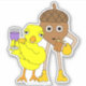 A yellow chick holding a wine glass and a nut holding a beer mug is a funny design for wine and beer lovers at birthdays and holidays.