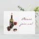 Wine and cheese dinner celebration invitation featuring an elegant yet casual setting with wine bottle, wine glass, figs, and grapes.