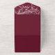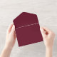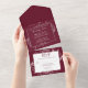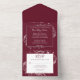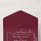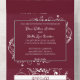 Invite guests to your upcoming wedding with a Wine Flourish All in One Wedding Invite. Invite design features an elegant leafy flourish with matching coloured background with a perforated response card. Personalize with the groom and bride's names along with the wedding date and location. Additional wedding stationery available with this design as well.