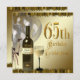 65th birthday party invitations with wine bottle and glass on a beautiful black and gold background. You can add the text of your choice to the wine bottle on the front and back of this elegant black and gold 65th birthday party invitation. Add your event details in the font style and wording of your choice.