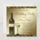 Wine Glass Bottle Black Gold 65th Birthday Party Invitation