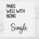 This wine label says "Pairs Well With Being Single" is the perfect gift for someone going through a divorce or breakup. It adds a touch of humour and whimsy to any wine bottle, making it a statement piece at any gathering or a thoughtful token for a friend in need. This label allows you to customize your chosen bottle, adding a personal touch to your gift-giving experience. Cheers to embracing new beginnings and the joys of being single!