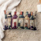 Throw pillow shown with a wine bottle's print on the front and a solid colour of wine on the back.