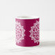 This white mandala sits on a dark pink-red background. The colour is very rich and sophisticated. Part of the Brosya Mandala Collection.