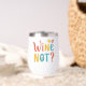 This "Wine Not?" insulated wine tumbler features a playful, modern take on retro typography in vibrant coral, teal, and mustard yellow.Made for wine lovers with a sense of humor, this tumbler is a fantastic choice for parties, outdoor adventures, or a unique birthday or thank-you gift.