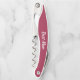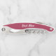 This trendy, wine red colour corkscrew bottle opener makes a fine gift for a wedding Best Man along with his name on back and printed in white, stylized script. Personalize corkscrew by replacing name with the Best Man's name. Available in many, popular wedding colour schemes.