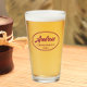 Verre de bière pour le marionnettiste mariage qui présente son nom imprimé dans une couleur rouge vif tendance, script stylisé à l'intérieur d'une bordure ovale couleur rouge vif avec date d'année mariage. Une excellente idée d'offre de fête pour une fête de bachelier! Personnalisez votre verre de bière en modifiant et en remplaçant le nom et la date par le vôtre. Disponible dans de nombreux modèles de couleurs mariages populaires.