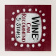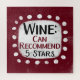 Un drôle de design typographique qui dit "Vin : Peut Recommander, 5 Étoiles". C'est du texte noir et rouge bordeaux sur un rectangle blanc avec des points blancs amusants et amusants qui l'entourent, le tout sur un arrière - plan bordeaux.