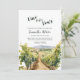 Vino before Wine Winery Bridal Shower invitation features a watercolor winery and mountains design. There's room on the back for the bride and groom's initials on a wine bucket.