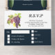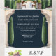A beautiful all-in-one sophisticated, upmarket outdoor winery watercolor invitation featuring a long wooden rectangular table with a crisp white tablecloth set below an arch filled with grape vines. A single lantern appears hanging from the middle of the arch and the table is flanked by stone pillars and poplar trees and a hint of vineyards in the distance. White editable text appears below the graphic set on a dark blue background which has majestic stone pillars and a poplar tree on either side forming an elegant frame to the wording. A tear of response strip at the bottom in white and blue has a single bunch of red grapes on it and black and white editable text templates for your custom wording. This ai design is inspired by the wine farms of the world, whether it be Portugal, Tuscany, Italy, Cape Town, the Napa Valley or any other wine region. Celebrate your union with this blue, white, ivory, beige, green and gold palette that is ideal for any bridal couple looking for a touch of class and elegance at their wedding. This budget friendly invite is ideal for the discerning couple that wants to stand out.