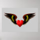 Winged heart with an attitude. Let 'em know you take love seriously with this kind of tattoo-style valentine -- a tough-looking red heart with black wings accented in yellow and orange.