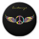 Classic hippie style round peace symbol with feathered bird wings to customize, personalize by changing to your name