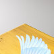 A radiant white dove spreads its wings against a bold yellow and blue backdrop, symbolizing peace, hope, and new beginnings. The striking contrast of colours enhances the purity of the dove, creating a powerful visual message of harmony rising above everyday surroundings.