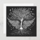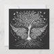 Metallic silver set of wings, tree and roots symbolizing wings to fly with details of birds, hearts and flowers on a black background. Artwork features wording, “Give the ones you love wings to fly, roots to come back and reasons to stay. She flies on her own wings. Rooted in love, she blooms.”