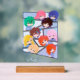 A Wingz Series Acrylic Sign featuring Gabby, Cara, Kylie, Kyle, Ivan, Lillianna, Brooke, Ayden and Coby! A multi character design showing character inside/peaking out of their own boxes.