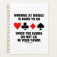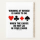No matter how often or how little you play the game of bridge, if you're a bridge player, you'll enjoy this wry bridge truism saying "Winning At Bridge Is Hard To Do When The Cards Do Not Lie In Your Favour", along with the four card suits. Make others do a double-take at the number one difficulty in winning at bridge (duplicate bridge) with this memorable bridge humour saying planner!