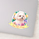 Winsome Bichon Frisé with Yellow, Pink & Purple Flowers Sticker, a heartwarming and personalized creation designed especially for women and girls who hold a special affection for the winsome Bichon Frisé dogs and the delightful beauty of assorted yellow, purple, and pink flowers. This charming sticker features a friendly Winsome Bichon Frisé with bright, expressive eyes and an adorable, playful face that radiates joy. The sticker is adorned with a beautiful array of assorted yellow, purple, and pink flowers, creating a scene that captures the essence of your beloved pet's winsome nature. To add a personalized touch, an elegant yellow ribbon is thoughtfully provided, offering a perfect space to proudly display your cherished pet's name.