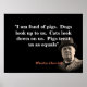 "I am fond of pigs. Dogs look up to us. Cats look down on us. Pigs treat us as equals" Winston Churchill quote.