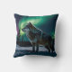 Winter Aurora & Timber Wolf Wildlife Design Throw Pillow