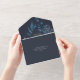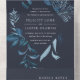 Our Wild Azure wedding invitation surrounds your wedding day details with a geometric frame of vibrant watercolor foliage. A modern yet organic choice for winter or spring weddings featuring intricately painted botanical elements. Colorway: Wild Azure, a medley of frozen blues on a navy blue background.