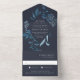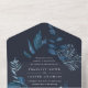 Winter Azure Blue Botanical Frame Wedding All In One Invitation