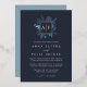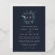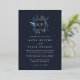 An elegant monogram wedding invitation featuring your initials, monogram or duogram at the top, nestled inside a square wreath of winter watercolor foliage with gold foil trim. A modern and elegant take on the botanical trend for winter weddings. Colorway: Winter Azure, a medley of frozen blues on a navy background.