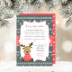 Adorable baby deer wearing a red sweater. A neutral gender baby sprinkle invitation suitable for 2nd, 3rd, 4th babies and beyond!