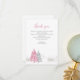 Thank you card featuring a Snowy landscape with pink pine tree.
