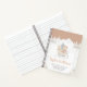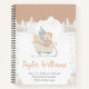 This cute and fun notebook features an adorable bear in a brown sleigh surrounded by snow, mountains and pine trees. Beautiful faux glitter flower arrangements and silver confetti add a festive touch. The text combines handwritten script and sans serif fonts for a stylish and modern look. It can be personalized with your baby's birth stats, such as name, size, date and time of birth, or if you would like to give it as a shower gift you are able to edit and remove text.