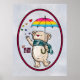 Poster with a illustration of a beautiful bear with umbrella in pansexual flag colours.