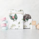This gift wrap features forest green foliage with cranberry red berries on a bright white background. This pattern coordinates with the Winter Berry Wedding Collection.