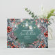 A beautiful illustration of pine needles infused with pine cones and red berries form a border around white calligraphy style templates which may be personalized to suit your special celebration. A strand of faux sparkling mason jar string lights appear to sparkle and shine and give a festive feel to the overall design. These are perfect for winter wonderland, festive season Christmas celebrations. The dark teal green and muted red and browns are suited to country and rustic gatherings too.