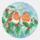 Winter Birds & Holly Berries In Falling Snow Classic Round Sticker