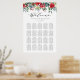 Please find your seat. This floral seating chart allows you to assign the seats of your guests. It features a watercolour garland of poinsettia flowers, red roses, pinecones, and greenery. Personalize by adding names, dates, and seating details. This floral seating chart is perfect for winter weddings and other events.