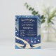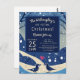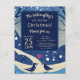 Celebrate your family holiday party or a Christmas wedding with this easy to update template. Simply fill out the name, age, date, time, location of party and any RSVP notes or other information. Change from "the Willoughby's are hosting Christmas!" to "Chandler and Addison are getting Married!" Available in many designs for every occasion. This blue and white design features a winter scene with snow falling on hills and leafless trees. Two love birds face each other. A pink heart floats above and between them.