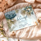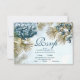 This winter blue floral Quinceañera design blends icy hydrangeas, frosted berries, and soft watercolor textures for a magical seasonal look. Cool-tone botanicals and delicate pine branches create a sophisticated winter garden atmosphere around your celebration details. The subtle snowy background adds a dreamy, elegant feel, perfect for a late-fall or winter Quinceañera. Personalize the text to create a beautiful keepsake worthy of this milestone event.