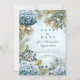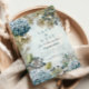 This winter blue floral Quinceañera design blends icy hydrangeas, frosted berries, and soft watercolor textures for a magical seasonal look. Cool-tone botanicals and delicate pine branches create a sophisticated winter garden atmosphere around your celebration details. The subtle snowy background adds a dreamy, elegant feel, perfect for a late-fall or winter Quinceañera. Personalize the text to create a beautiful keepsake worthy of this milestone event.