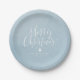 Winter Blue Simple Calligraphy Merry Christmas Paper Plate