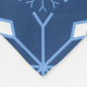 Winter blanket with a pattern of snowflakes and ice crystals in light blue and white on a dark blue background.
