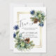 Chardons bleus, cônes de pin, feuilles d'Eucalyptus, faire-part de mariage d'hiver à thème mariage des merveilles, partie d'une plus grande collection qui inclut des invitations enregistrer les dates des cadeaux de la fête de la mariée de rsvp etc. Pour les idées de thème du guide de planification des mariages de Noël ou d'hiver, visitez weddingdesignchic.com .