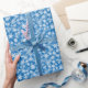 Perfect winter design featuring a blue background and different sizes of white snowflakes makes this gift wrap a good choice for Christmas or any winter gift needs!