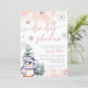 Blush pink winter wonderland penguin baby shower invitation.