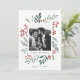 This completely customizable 1- photo holiday card features elegant hand-painted watercolor wintery botanicals that beautifully frame your photo. Comes with a matching pattern on the back and room to write a personalized message. This design is part of a collection. Original artwork by designer Nicole Barreto. Shop holiday cards and much more at www.zazzle.com/store/nbpaperco