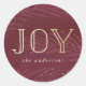 Add a chic, festive touch to your holiday envelopes, gifts, and more with our elegant joy holiday stickers. The holiday stickers feature the word "Joy" in faux gold lettering with a background of snowy pine branches and burgundy watercolor. Personalize the burgundy and gold holiday stickers with your name or custom text.