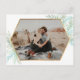 A budget friendly option, this Christmas postcard frames your favourite photograph with a modern and on trend faux gold hexagon frame accented with wintery blue and green watercolor painted branches. Easy to personalize text on the back side lets you send your own custom message of holiday cheer in elegant, deep green typography.