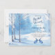 Blue and white winter woodland landscape watercolor trees and rabbits bridal shower invitation. This blue and white winter wedding shower invitation is perfect for a winter wedding shower. This winter trees bridal shower invitation features a beautiful watercolor snowy landscape with trees, snow, and rabbits. This winter bridal shower invitation has a rustic outdoor feel. It's perfect for a wedding in a forest, meadow or mountain recreation area in the winter.