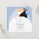 Winter bridal shower invitations, with an illustration of a bride and groom on a blue snowflake background. Get the matching postage, favour labels, and mailing labels. Contact us for custom colours to match your wedding colours - PMCustomWeddings@hotmail.com