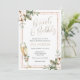 This Brunch with the Bride Bridal Shower invitation is perfect to celebrate the bride to be or a bride that has already eloped. Customize with your information for the bride to be. Featuring a gold champagne flute, gold frame and winter roses, evergreen with eucalyptus.