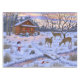 Winter Cabin Deer In Snow Christmas Scene Tablecloth